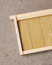 Wax sheets of Crimped Wired Foundation made by Dadant & Sons Inc. 9 vertical crimped steel wires create strength to support perfectly milled cells deep exact walls.