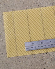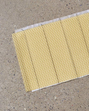 Small cell (4.9mm) wax sheets of Crimped Wired Foundation developed by Dadant & Sons Inc. Steel Hook fits behind the wedge in wedge top bar frames. 9 vertical crimped steel wires create strength to support perfectly milled cells deep exact walls.