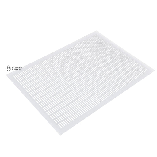 This plastic queen excluder prevents the queen from producing brood in the honey supers. Precisely measured holes allow the worker bees to move thr...